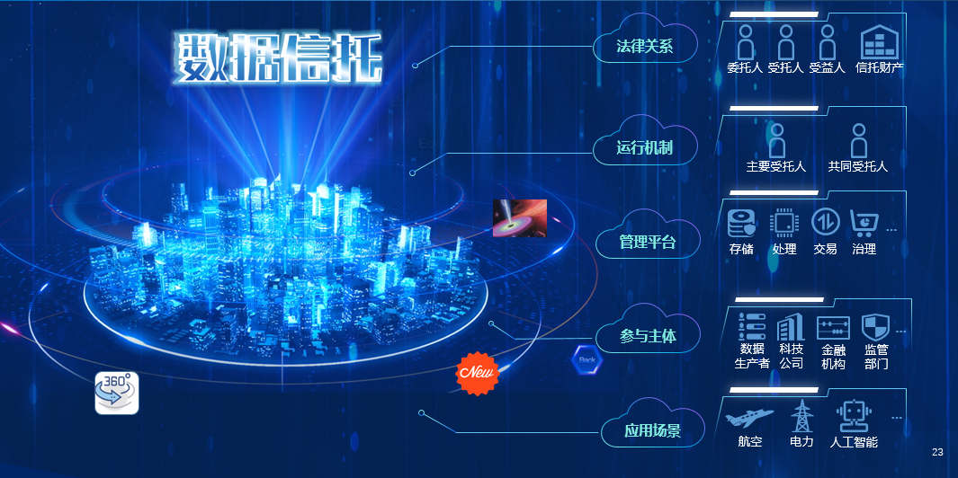 (3)数据信托服务行业数据的基础设施建设。围绕航空数据和电力数据,中航信托正在基于数据信托构建服务行业数据的基础设施建设。打造赋能科技+产业+金融的数智产业体系,推动数据要素的应用,实现数据资产化。